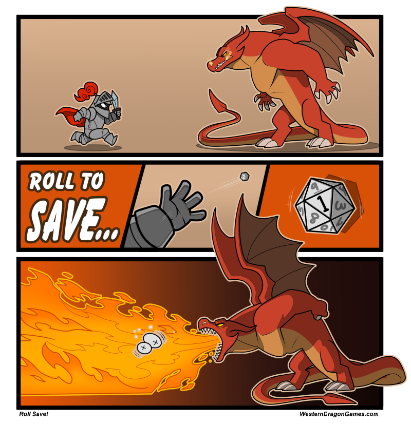 Roll Save! will be a series of comic spoofing the epic failures involving the epic failures of dnd (dungeons and Dragons) style heroes when the d20 (a 20 sided dice) rolls a 1: 1's mean the failure will be epically failed!