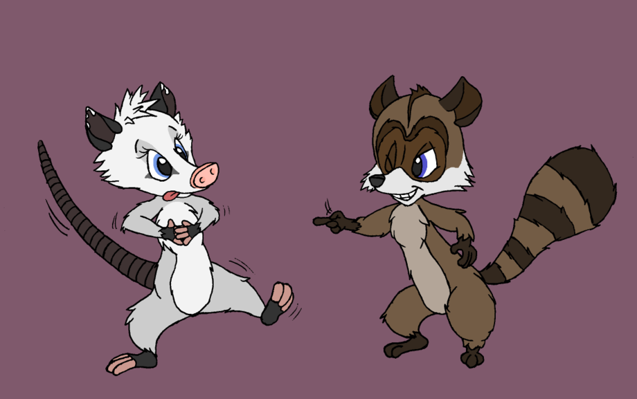 Anyway, I thought about doing the request literally, but then this sprung to mind and I liked it even better. See, RJ's making a little gun with his fingers and going 'Bang!'; which even makes sense considering Heather's a possum and is practicing her dying-on-cue. You could even say RJ is 'finger-banging' Heather. Tee hee.