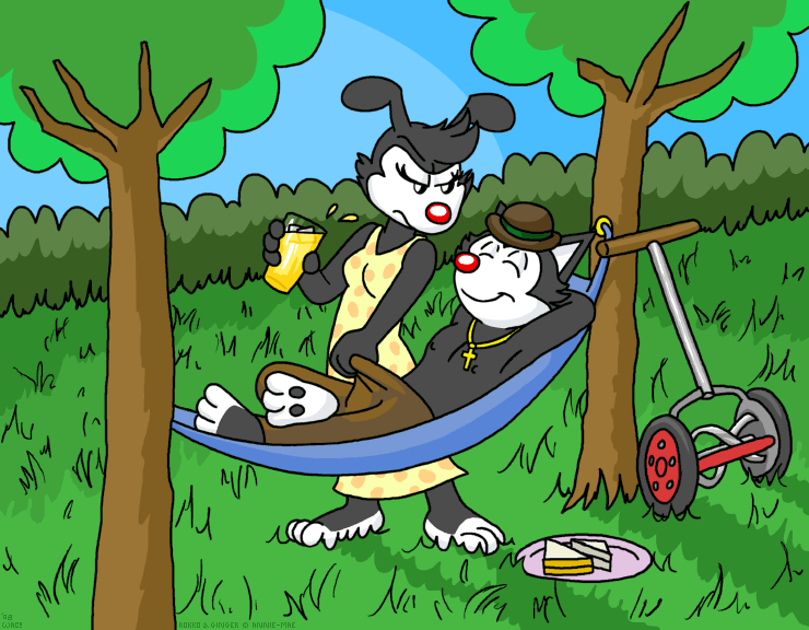 Ginger brought out lunch for her hard-workin' man, only to find out he ain't so hard-workin'. So, if he won't cut down the grass, it's time he got cut down to size.