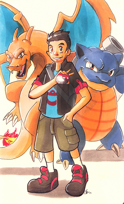 My nephew Julian recently got into Pokemon (a new nerd is born!) And so I decided to draw him as a Poke-trainer with his two favorite Pokemon :)