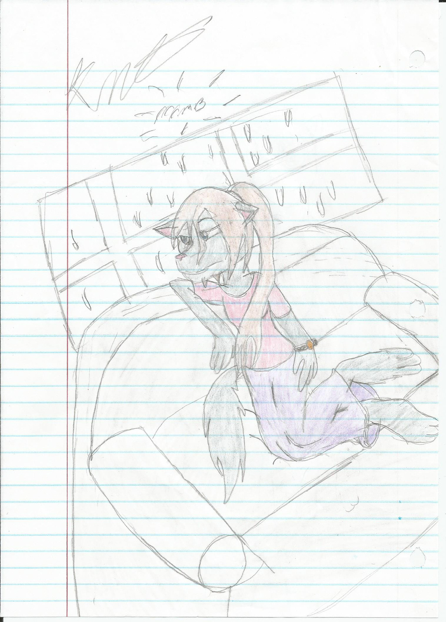 Anyway, this is just my fursona, sitting on the couch, feeling sad and being cute. She's looking out the window during a thunderstorm, she has kids that love her, and that she loves, but, she, like myself, is missing that one part she desperately wants, a loving girlfriend.