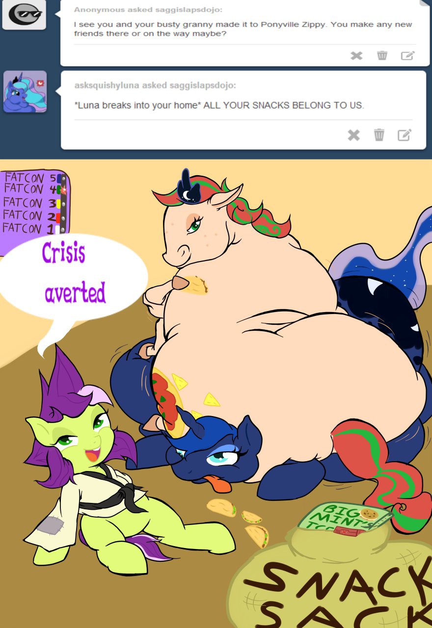 "Well, I DID meet this big pony south of the Equestrian border. Salsa Spice, the taco pony. We made a deal, I split my snacks with her and she agreed to join my party against the fat menace.