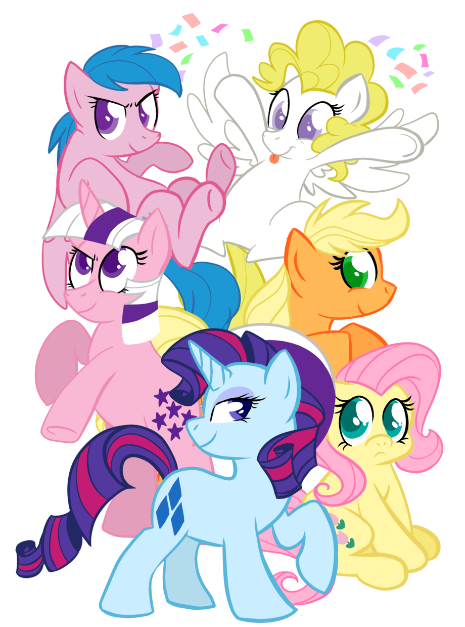 The original mane six/G1 ponies in G4 style.