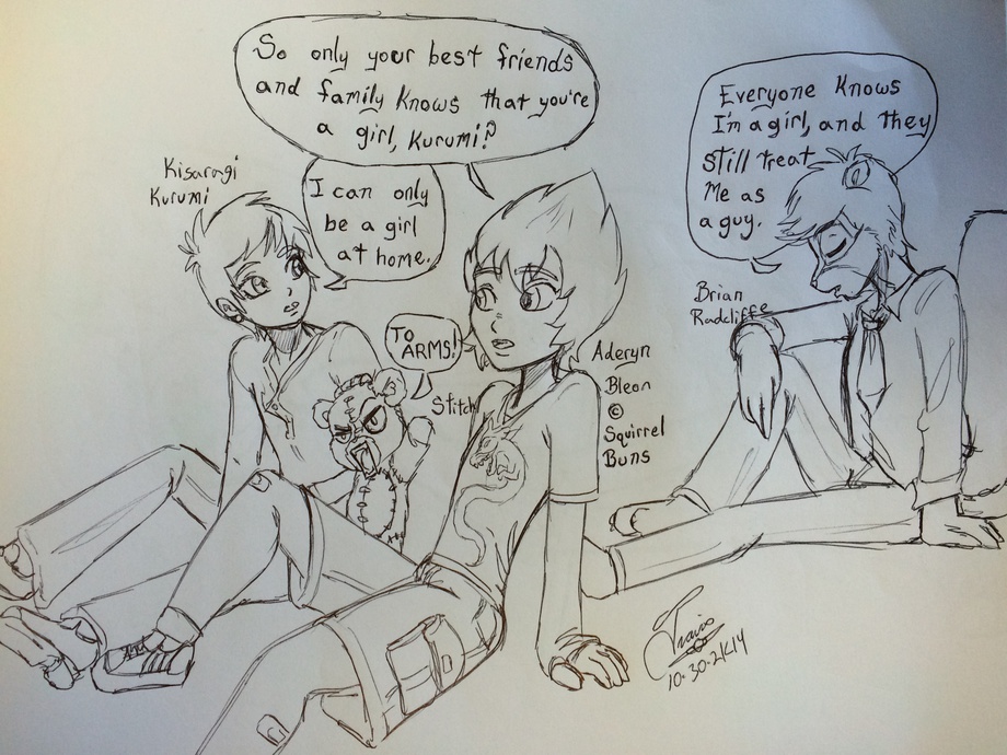 My two tomboys, Athletic Kurumi with her teddy bear Stitch and skunkette Brian and SquirrelBuns' Aderyn.
