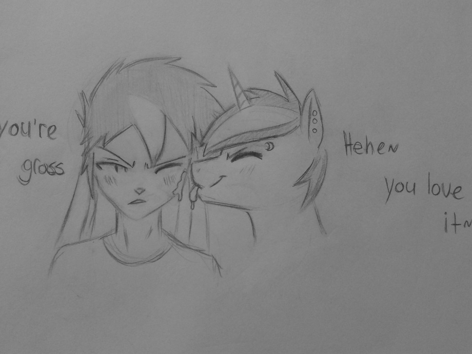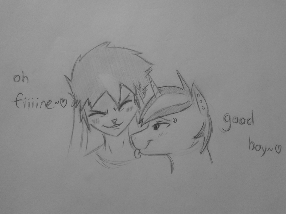 A thing I drew of me and a special bunny, he knows how to cheer me up when I'm down, which is admittedly often.