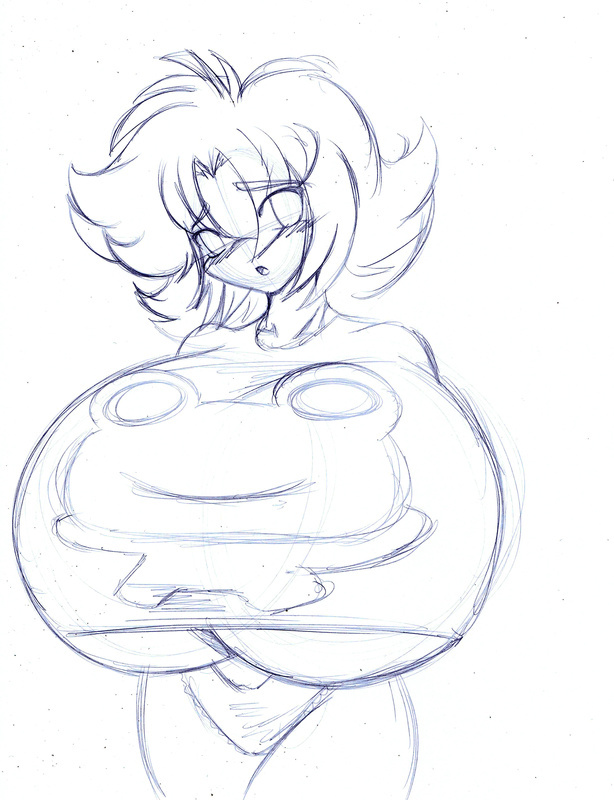 As I've mentioned before, Esmeralda - like many real-world frogs - is capable of 'expanding' under certain circumstances, especially when scared, startled, nervous or otherwise flustered. From the look of things, her bosom must have bwoomped up while she was sleeping. Poor girl looks more than a tad embarrassed. I can't say I blame her.