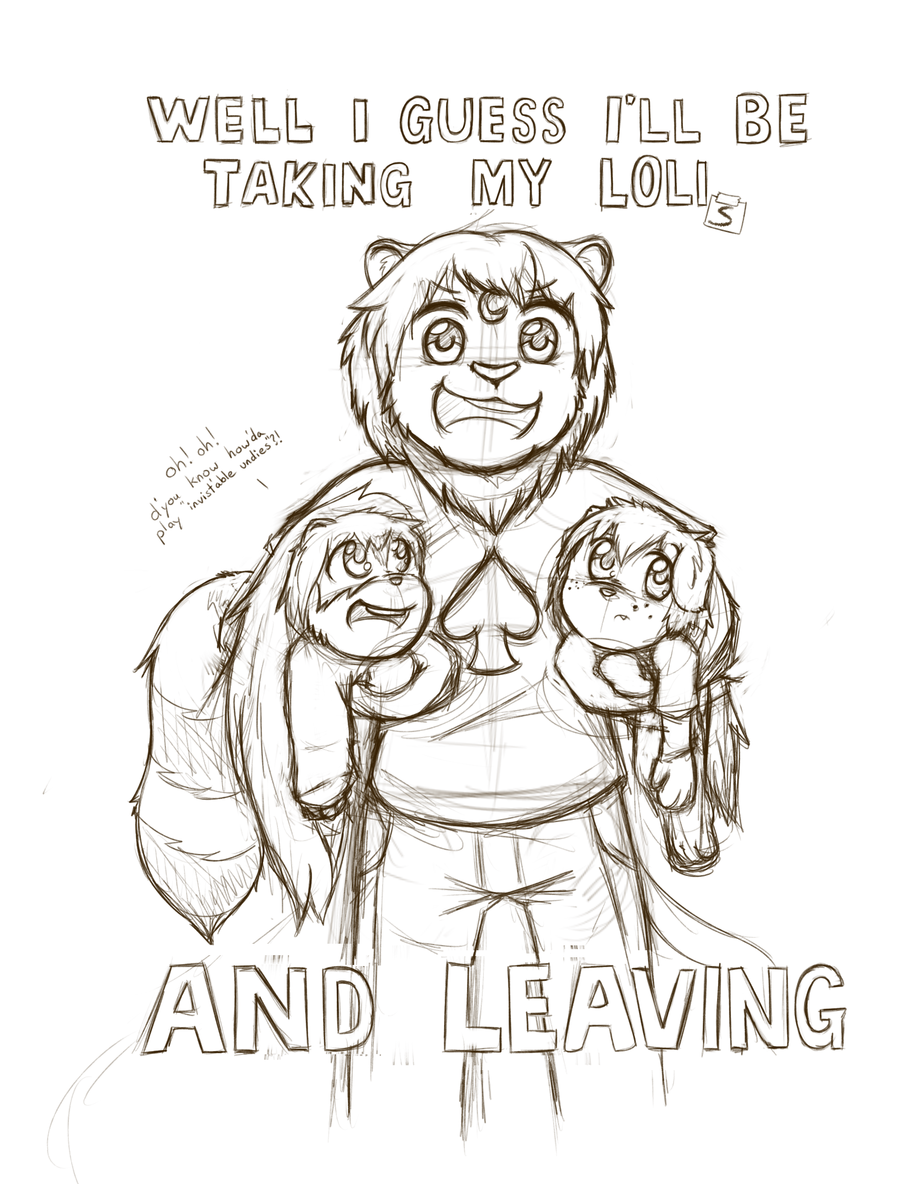 in the style of the meme 'I take my loli and leave'. (http://rs1img.memecdn.com/i-take-my-loli-and-leave_o_1...) I half joked about this idea a while back but actually wanted it done, it was worth the wait. If anything it turned out so much better than I imagined and I hope you all agree. Even the sketch work has it's certain charm as well (uploaded this as well just to show you all what a good job Ketsa has done...hoping he doesn't mind).