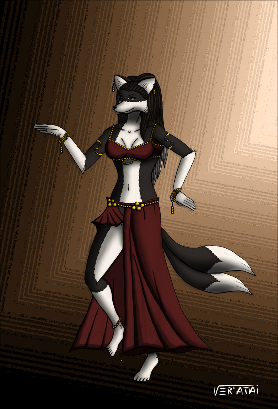 this was a gift for my friend Tales, her foxy char Tales, dressed and colored as a 'nubian dancer'