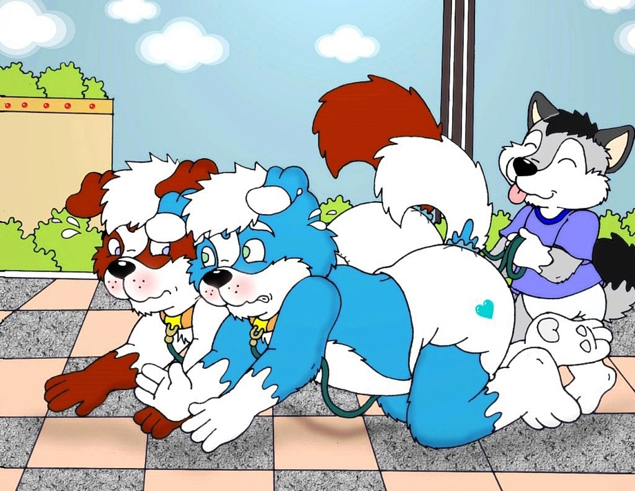 ***Walking through the park with the boss and Matt on all fours! Bringing them with a collar and a leash ... and also wearing diapers!***
