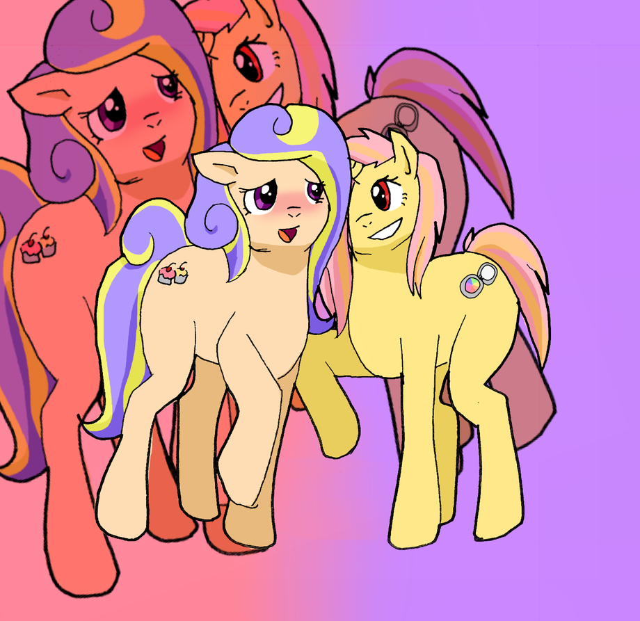 Her name is "Sweetiepie Cupcakes" but the other ponies call her SP for short. Her cutiemark has two cupcakes, one is yellow icing and the other is pink icing, and her talent is to make delicious sweets. She can cook other foods, too, but shes more well known for her fabulous bakery.