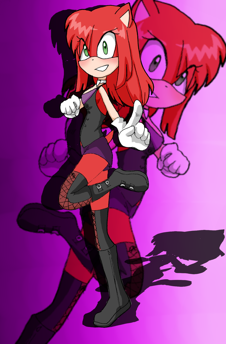 Its me! Rose as a hedgehog! I decided to make the fur red, since I think red looks better as a fur color with purple instead of brown. And my favorrite color is purple, so i needed the clothes to have purple, and it would look weird with brown fur. Anyway, here I am! I hope you like my drawing!