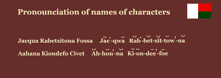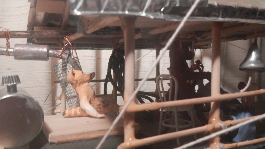 The Captain is the Fossa at the helm. Name: Jacqua Fossa The deck paw is the Malagasy Civet sitting on the engine compartment covers. Name: Aahana Civet.