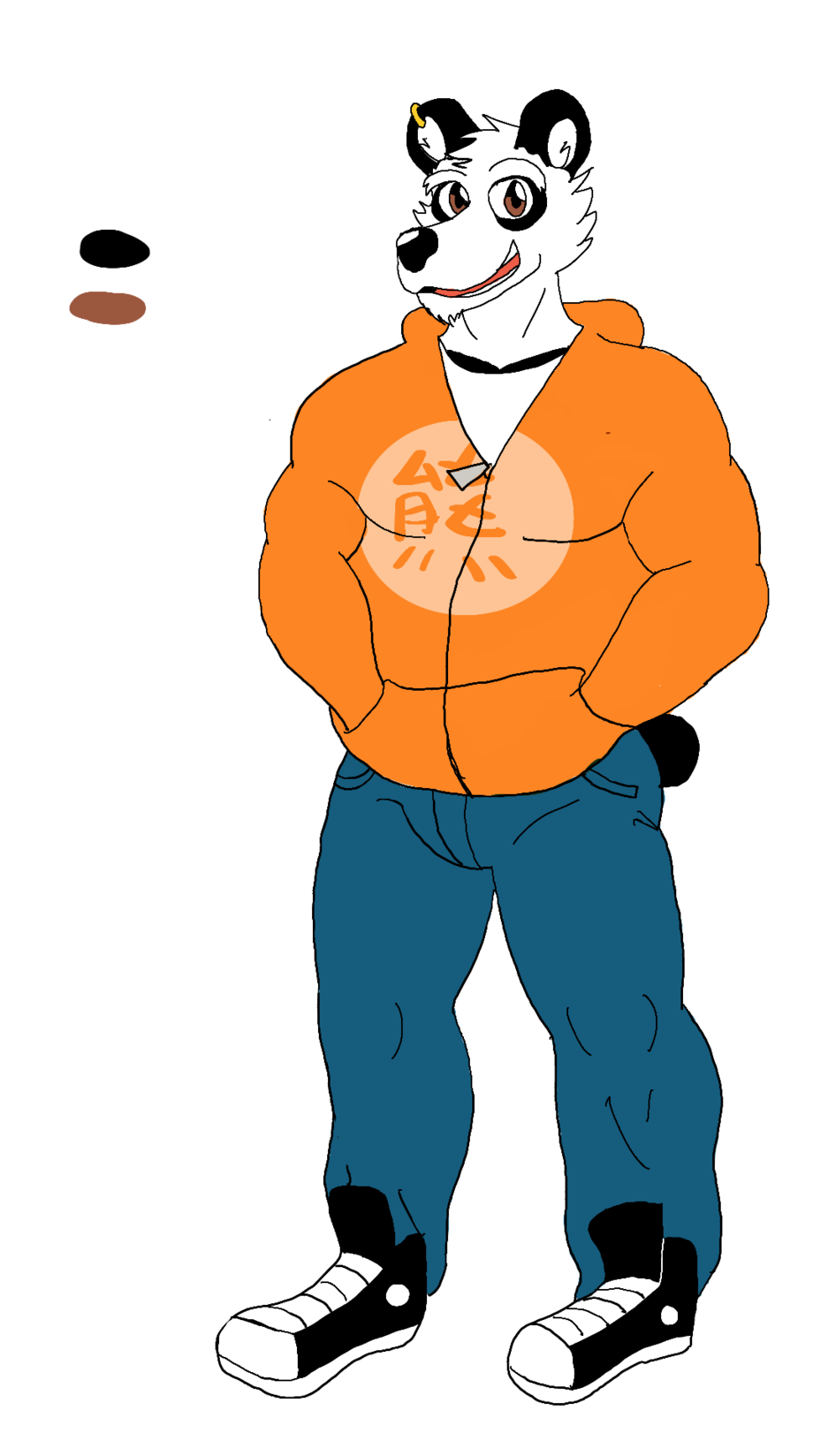 An earring on his right ear.