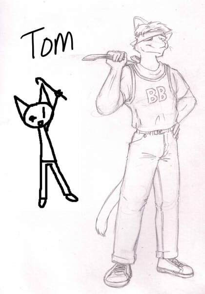 And some more fan art for RubyQuest, this time in the form of the first other living character that Ruby finds in her quest to get the heck out of the Metal Glen, Tom. Whereas Ruby has issues getting things done due to her GIRLY FIGURE, Tom's MANLY PHYSIQUE makes mostly short work of anything requiring brute force. It's tempting to shove it some spoilers for all three of you that have not seen RubyQuest all the way through, but, let's just say there's some heartbreak toward the end. One might also notice how I made the outfits a tad more complicated that the original depictions of the characters.