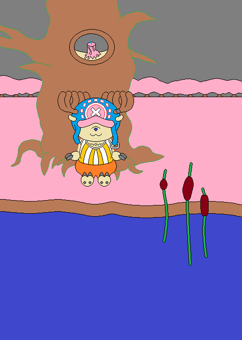 The picture is looking better all the time. This time around I added a bit more to the background, placing Chopper's backpack against the tree and a bag with his Rumble Balls beside it spilled out a bit. I have also begun to color in Chopper with shading as well as tweak his design a bit. I should have most if not all of him colored in next time and maybe some more added to the background should I decide on it.
