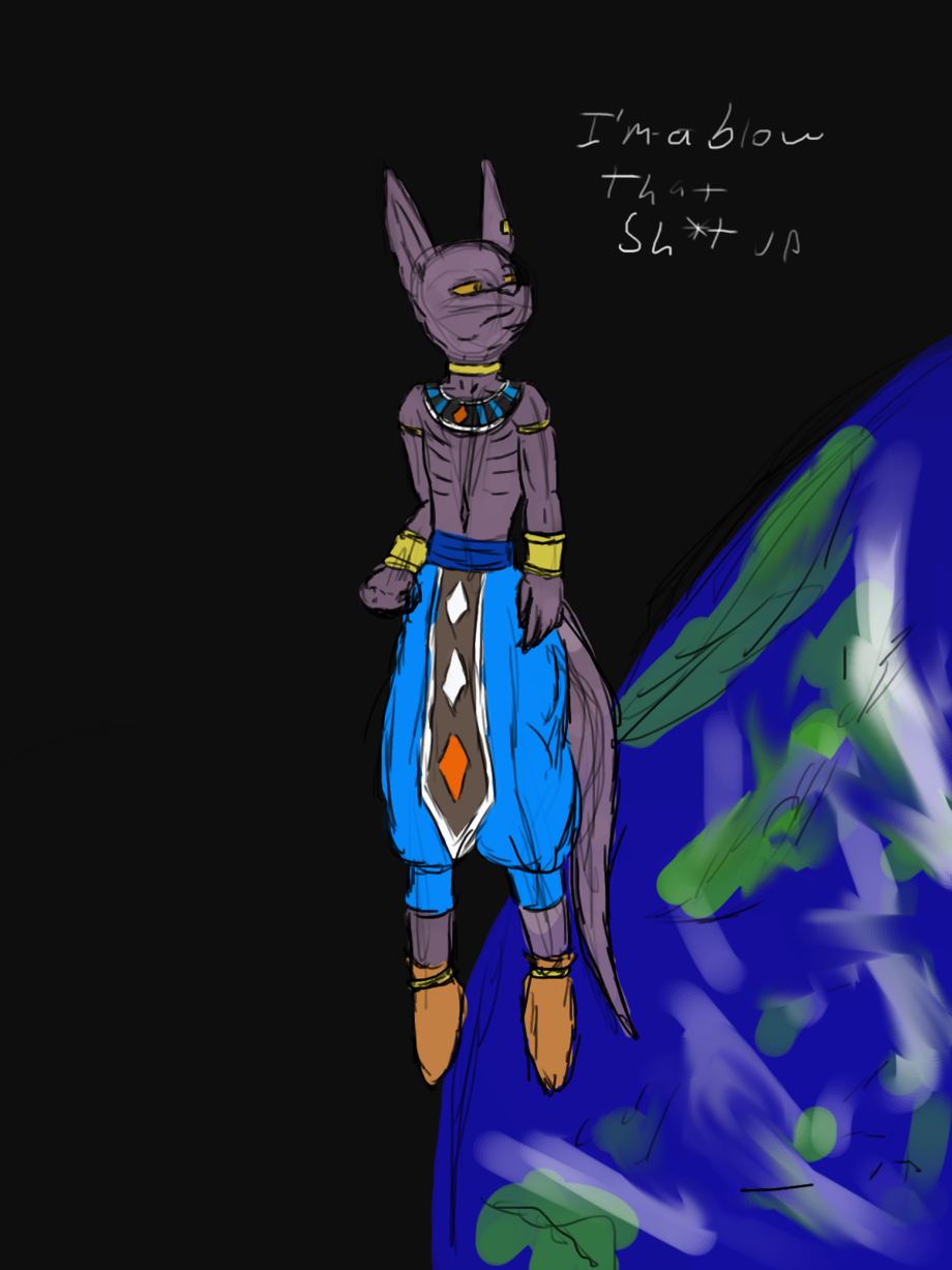 So, my younger brother, who is a DBZ fan, wanted to see me draw Lord Beerus, and here's what I came up with. Decided to post it.