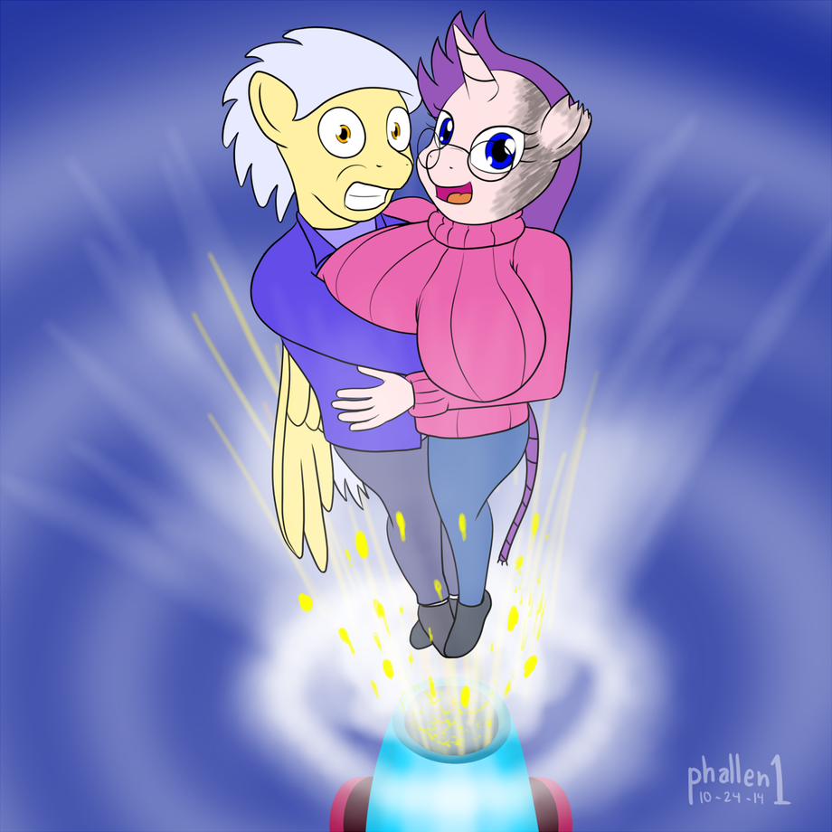 I have yet to draw the two of them in parachutes, but if I did, a cannon seems to be a good way to incorporate both his explosive thing and my skydiving thing.