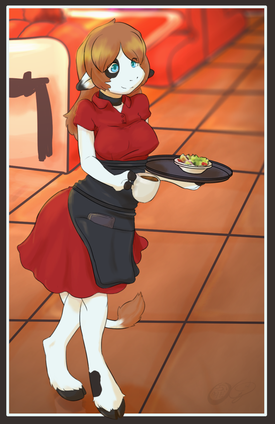 I imagine it'd be somewhat difficult to carry things with hoofish hands, but she seems to do a decent job nonetheless~! She's good to have as your waitress too, since you can always hear if she's nearby from her footsteps~ X3