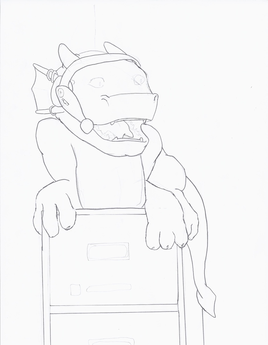 One thing that cats and dragons have in common is a tendency to like to sit on top of tall things. So, a file cabinet becomes a perch when setting appointments requires spending some time on the headset.