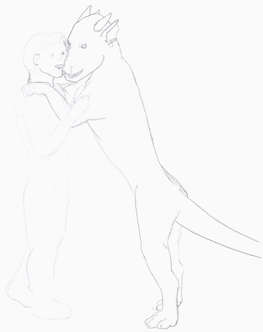 (Done as a chance to practice drawing humans - which I don't do enough of - and explore a bit of the weird relationships that are formed in the lapdragonverse.)