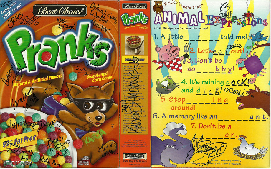 Ok, while at Wild Nights, i had to run into town to buy some food.........and look what i found, i squealed and grabbed it as quick as i could, took it back to the con where i go this weird idea to have people sign it.....look out Trix Bunny, Pranks The Raccoon is on your tail.