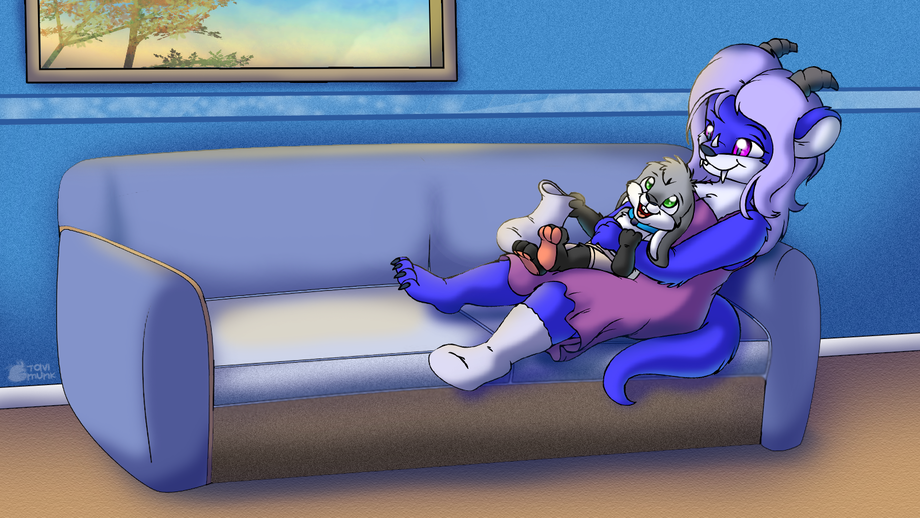 Deren getting some cuddles from Nora. But she didn't notice her sock suddenly disappeared ^^