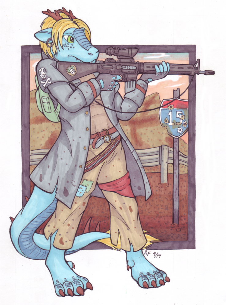 Harui is an awesome blue dragon lady who commissioned me to draw her in a fallout themed pic!