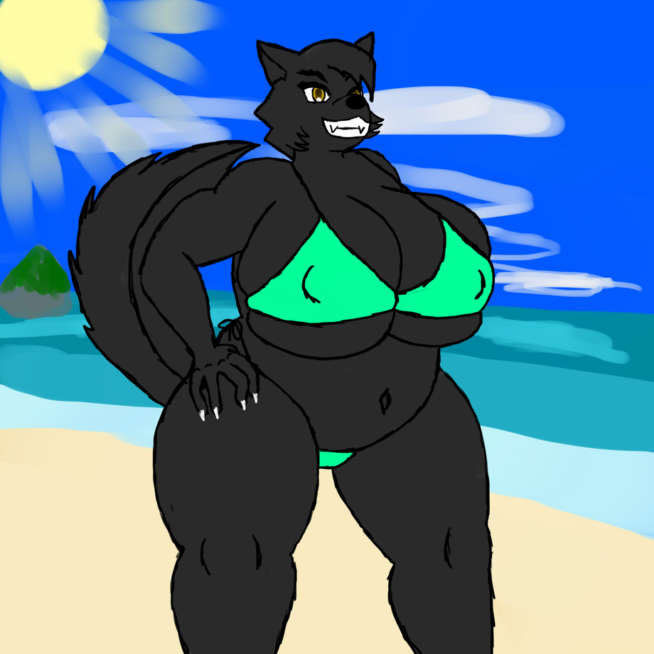 Oh my, she's the hottest woman ever, big, tall, large, big in all the right places and a sexy black wolf. She looks like she's a fun woman to have around.