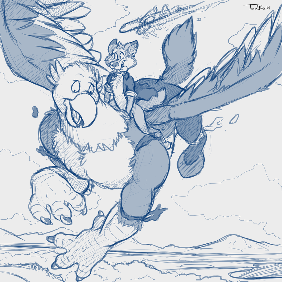 Everything turns out for the best though, because as soon as my transformation completes, I fly out of the plane with Teasel on my back, soaring gracefully as our doomed plane continues its fall in the background.