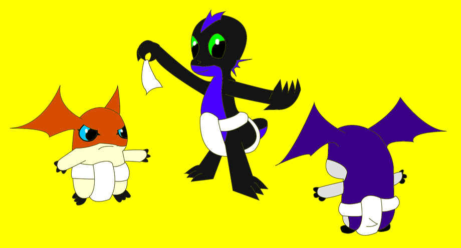 It was only a matter of time before Patamon and Tsukaimon began their endless battle over who was more adorable. So I suggest they settle this in a civilized manner, Sumo Wrestling. We all dressed in Mawashis modified to act as diapers and the 2 prepared to throw each other around. The only rule was no mawashi pantsing, wedgies are fine. I love how this came out, especially how my mawashi shows off some more flesh, hehehe.
