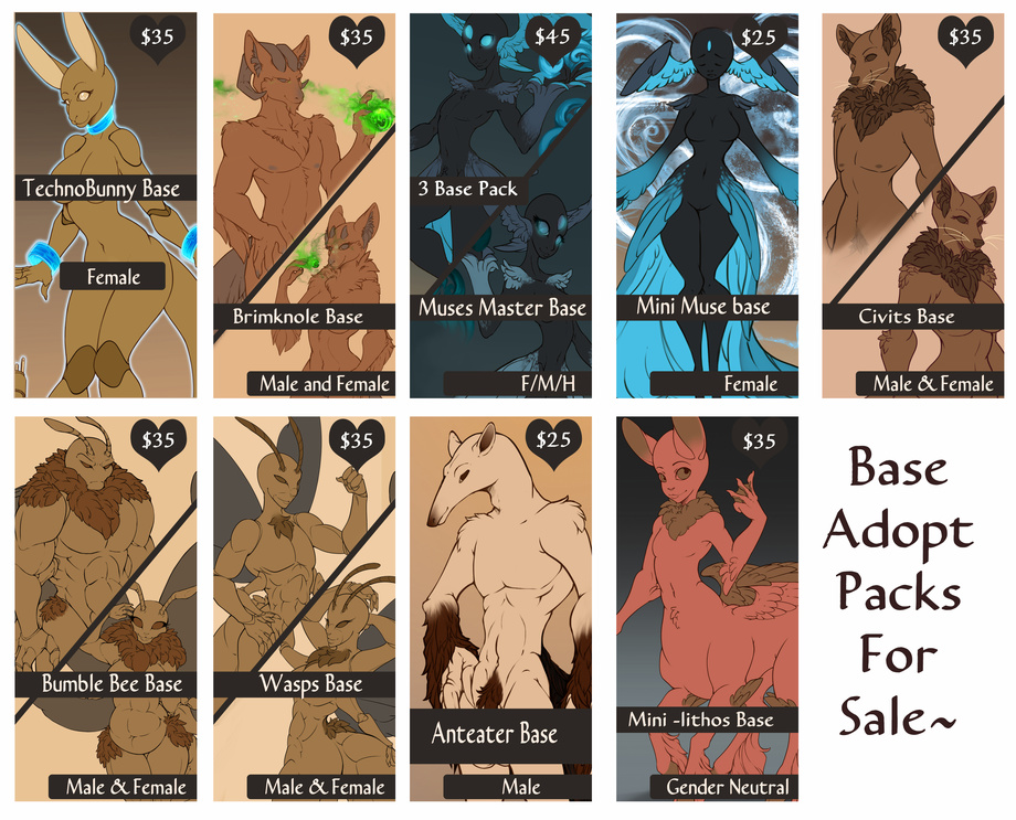 and with each base you'll be getting a psd file with the lineart, and a base color "blocked in" so coloring them becomes a bit easier. (and yes some contain some artistic nudity, so be warned there be tits n dicks here ^_- ) so please hit up my shop n see if theres a species you'd liek to get your hands on ^_-