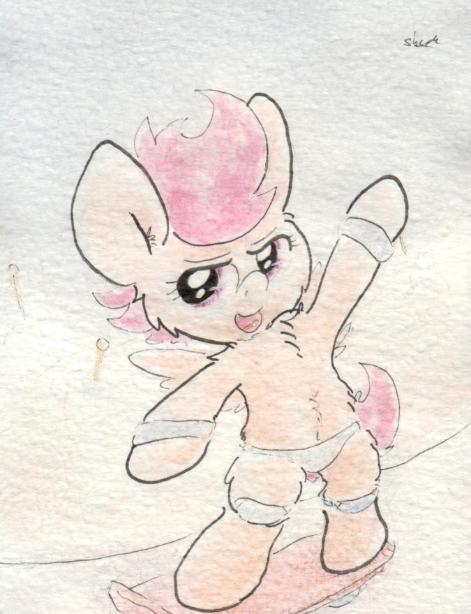 Maybe Dash is standing by to help. Or maybe the place is softer. But no, it doesn't make sense, considering the rest of her armour. :D