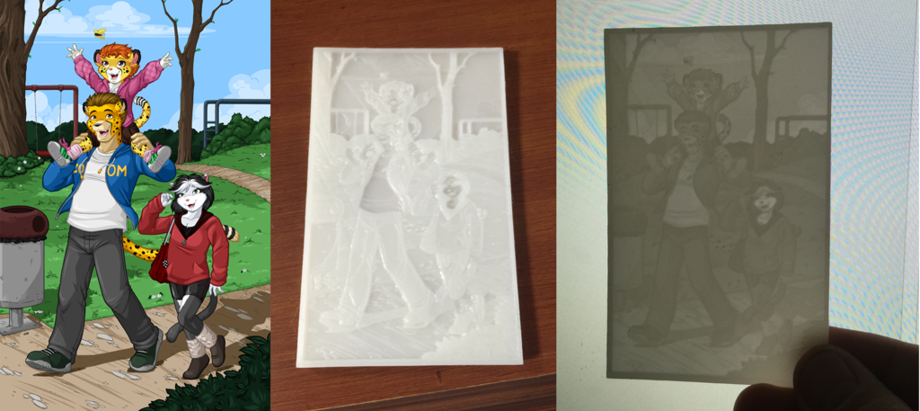 Ever have a beautiful piece of artwork of yours and say "Man I'd love to see this in 3D!" or "I'd love to have this as a badge but not just something regular." Well now is your chance. TJA is taking commissions for Lithopane Badge / Art prints . We can take any picture you have the rights to and print it out in a high definition litopane. Just hold it up to a normal back light and the image pops out in high quality. We do have a few more examples if you'd like to see but they're more adult so I wanted to keep the ad in the "General" Category, I'll post up the one of Sarina here in a little bit! Prices Run about $25 a piece plus $5 shipping (Possibly more if international) If you're interested let me know! We have a very quick turn around and I can likely still ship for the holidays if you get in touch with me quickly!