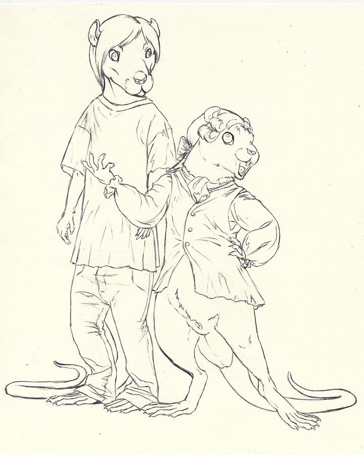 Hyrhyn the tiniest metalhead. With the tiniest drumstick too. Really, I should have looked at some a reference photo, this thing I drew in his hand's so short, it can barely even pass as a chopstick. Elsewise I really like how this turned out. Okay that and the smeared ink on his toe caps.