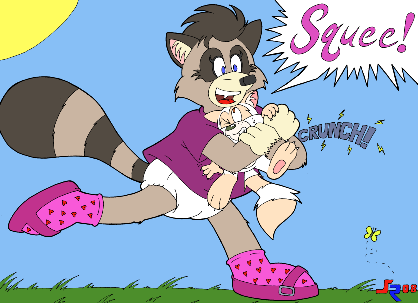 Sunny unleashes her inner Elmyra on an unsuspecting SachiCoon in this drawing. Just a few notes about this picture...
