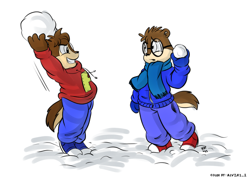 and colored. This one being Alvin owning Simon in a snow ball fight.