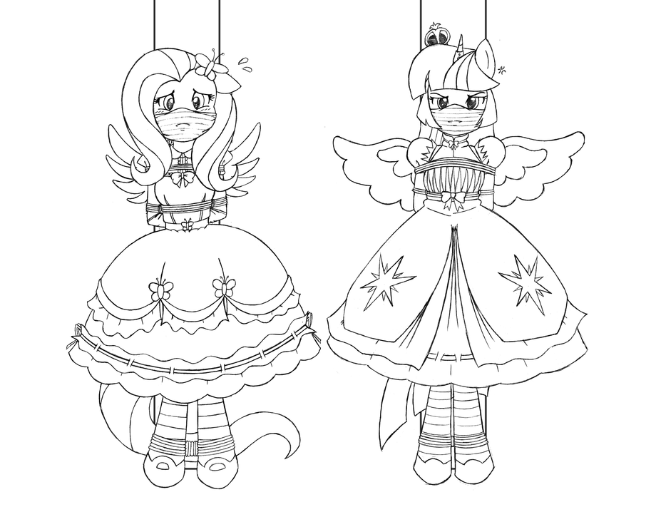 Ponyguy67 commissioned me to draw Flutteshy and Princess Twilight Sparkle in Lolita Fashion, particular Sweet Lolita though I think that works better on Fluttershy while Twilight gets a bit cute Gothic Lolita either way Lolita Fashion and Bondage just fookin works!! and yes those are stripped OTNs gags, and they seem to work with the fashion :p