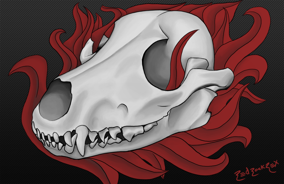 Some kind of canine skull, and some red swirly stuff because it looked cool.