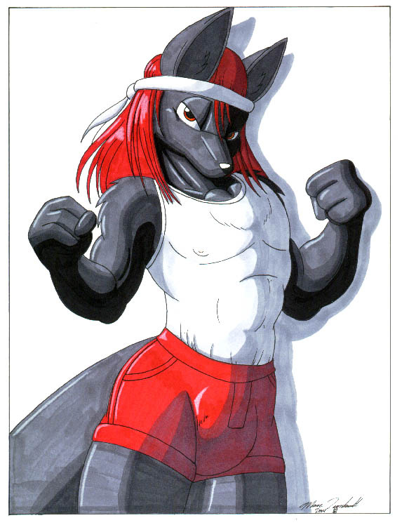 This was not only the very first comission I'd purchased, but it also was the original concept for Daemonjii... At first he was a wolf/jackal hybrid (although he's evolved to more of a wolf over the years, but the hybrid mix still remains), and this concept has stuck for some areas, having split off into another character altogether. Character was much more aggressive at the time of this drawing...