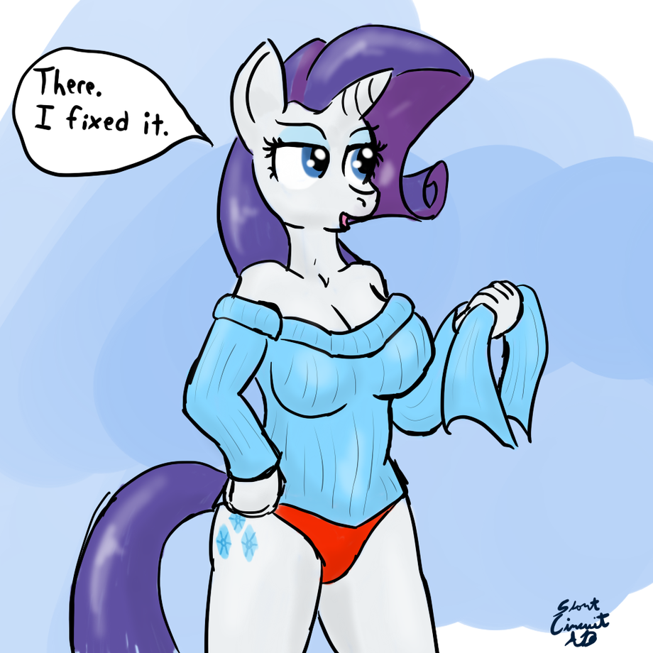 Rarity puts her own personal twist on the Boob Window Sweater. This is part of a few pics I have started working on with this odd sweater.