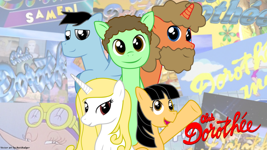 J'ai eu envie de ponyfier le groupe d'animateurs de cette émission des 80s et 90s qui m'a marqué... Hé, ils passaient la G1 de MLP, après tout aussi :p Inutile de vous dire lequel est lequel, je crois que l'image parle d'elle-même :p