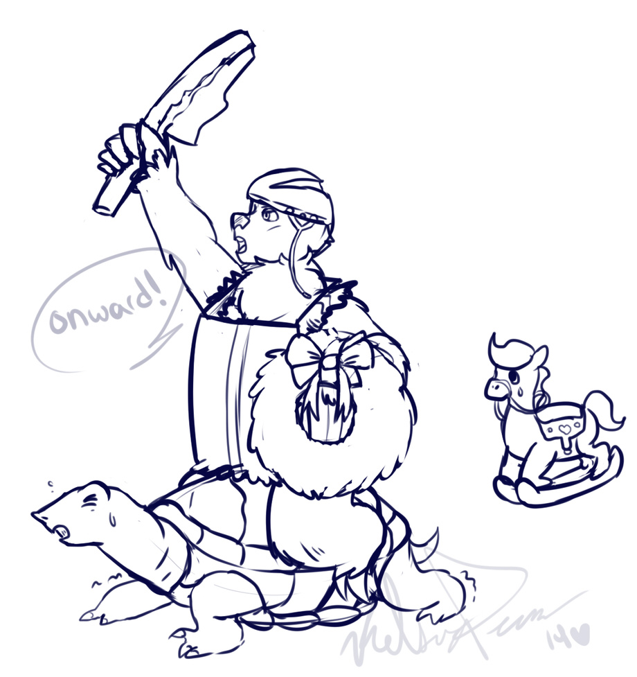 Other than the sloth claws being too fat to look slothy, I can't think of how this could be improved but than with by adding the colorings. Oh, maybe make the wrapping paper tube longer so it's better the scale? Either way's fine on that though, since I'm sure they come in plenty of sizes, shrug... Can't nitpick it better than that. Poor, abandoned horsy.