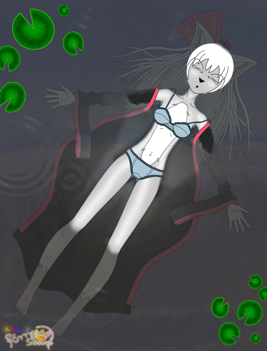Miyoko (美代子) Chinatsu (千夏) Tsubaki (椿). Miyoko after a long day of work with Sly, taking a break in the termal waters from Celestial Forest of the planet Xeddi, but in the moment she relax she fall asleep with her kimono closer to the shore and floating a little...
