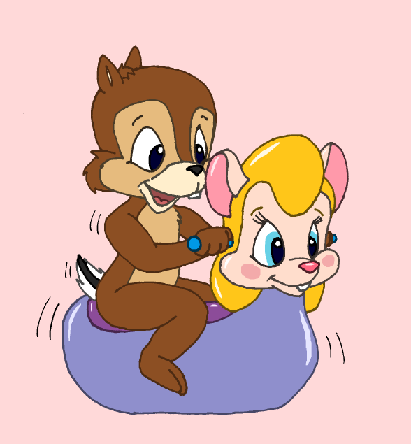 In this pic, I have no idea where the idea came from, but as soon as I got it I wanted to see it on paper. Gadget has been turned into a shiny inflatable rocking-mouse. I tweaked her colors and added rosy cheeks to make her extra toyish.
