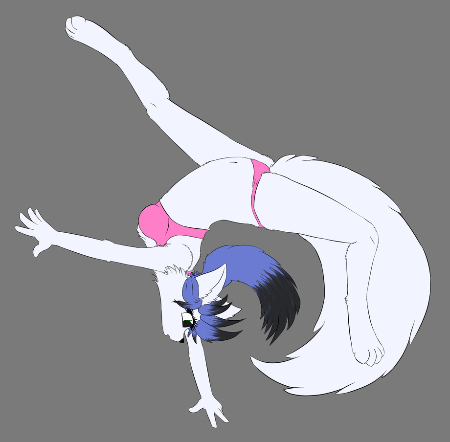She certainly is quite a flexible vixen! But I think you've really done a fantastic job with the pose, and as I said on the sketch I love how the curve of her tail compliments the curve of her back and how it forms almost a complete circle with her, which really helps to give her a feeling of motion and grace that's really quite outstanding. The background helps with that, too, and now she really does have that feeling of motion momentarily stilled for the picture, and that she could land on the mat any second.