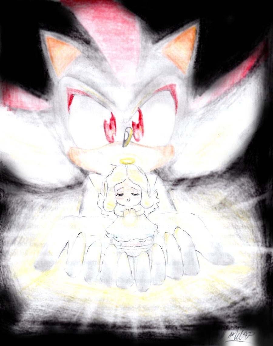 Anyway, it's a drawing of Shadow holding a Maria ornament. I guess I went overboard with the light and dark contrast, but I think it still looks nice.