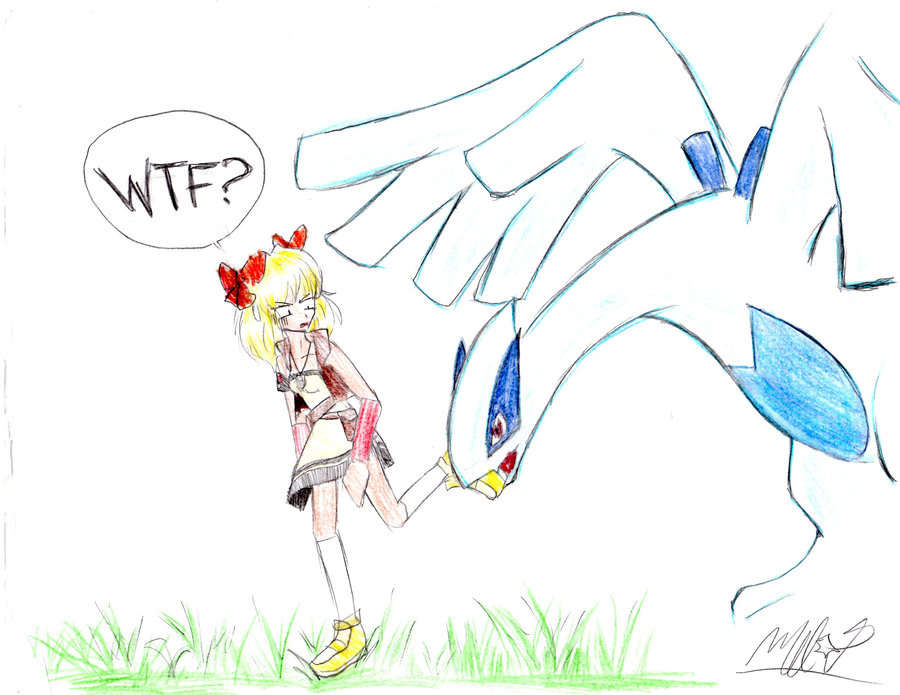 After I caught my Lugia in SoulSilver, I decided to train it. Here was the problem, though: whenever I talked to it, a message popped up saying that it was chewing on my shoe! I took the time to wonder how that would make any sense at all, even in Pokemon. I mean, it's a giant bird deemed to be ruler of the seas, and it turns out it likes to eat shoes. WTF?!?! After awhile I came up with two ideas for pictures. The first one is Lugia tearing off my foot, as it had developed a taste for flesh, and starts going on a rampage and killing everyone. The second one, which is far less violent, is this. After a while, it became a joke between me and my brother that whenever he lost his track running shoes, we'd blame my Lugia.