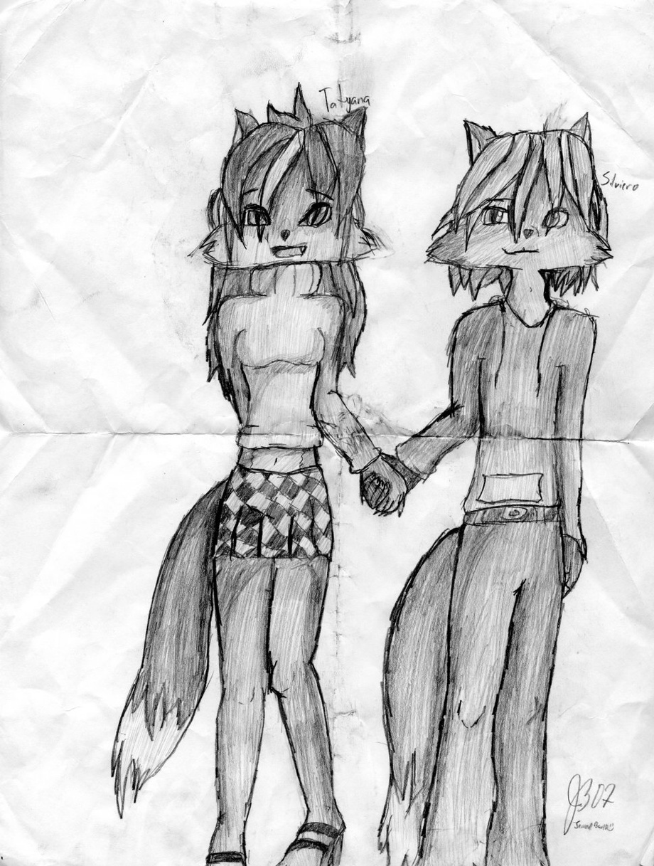 My two characters, Tatyana and Silviero, holding hands. obviously. took a pretty long time to do his. can't say how long tho. just that it took a very. long. time. <__<