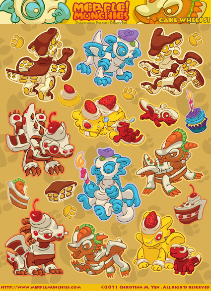 This is the art for little cake dragons edition sticker sheets.