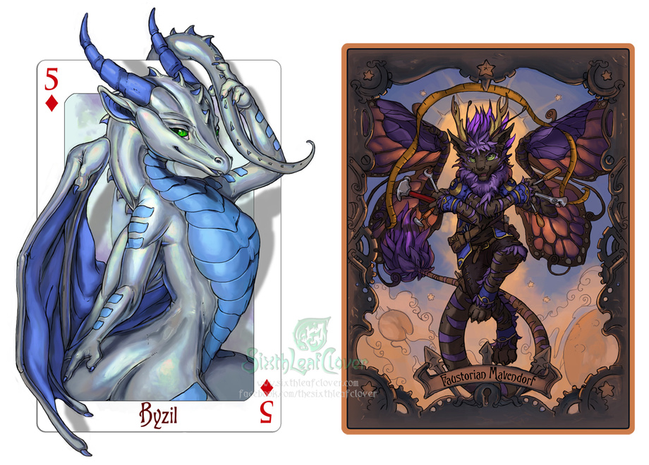Two Recent badges I've done. byzil on a playing card and draphilius character on a tarot card.
